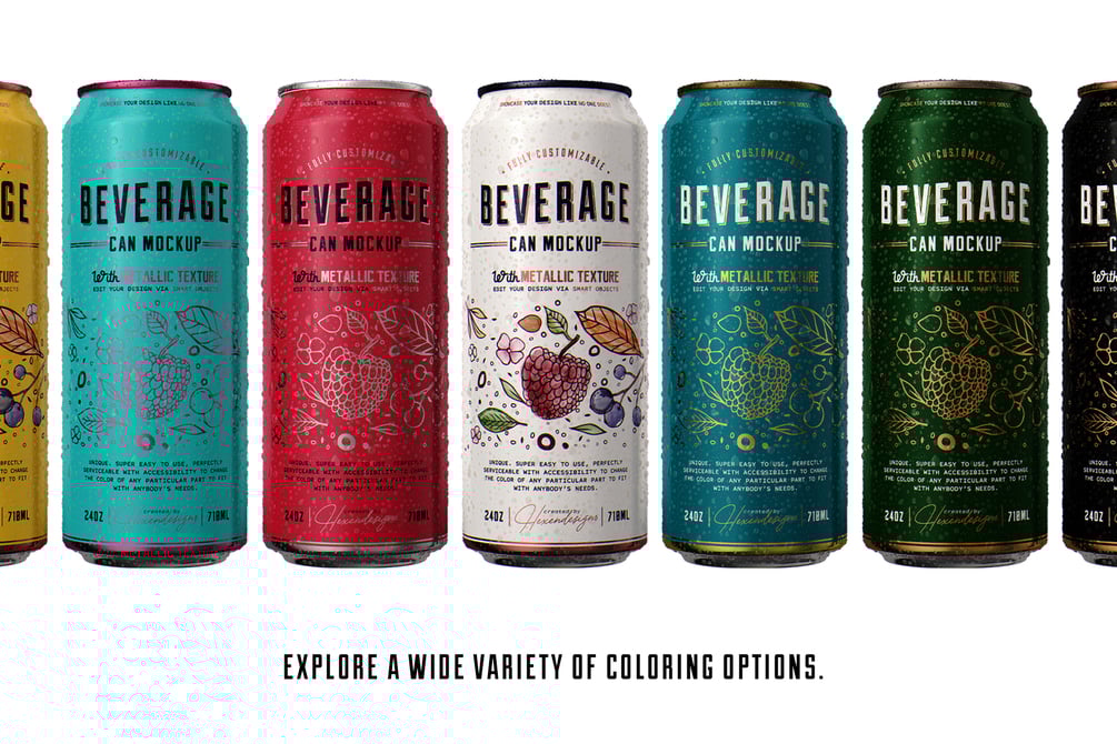 This is an aluminum 24oz/710ml PSD beverage can mockup that is fully editable through smart layers and is ready to use as a template for drinks, beers, sodas, coke cans, or any iced beverage.