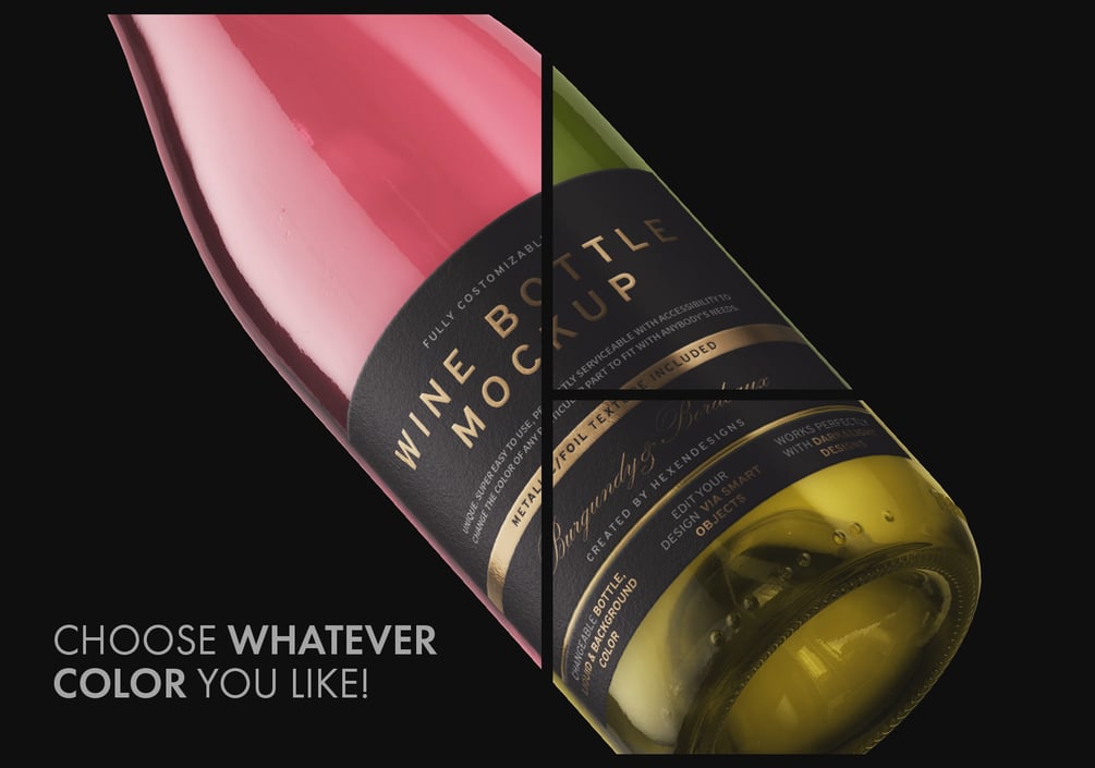 This is a 750ml PSD wine bottle mockup with two different bottle shape that is fully editable through smart layers and is ready to use as a template for wines, liqueurs, vodkas, whiskeys, spirit drinks or any type of beverage.